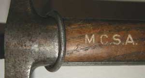 This ice axe was a veteran of many climbs in the Drakensberg Range of South Africa, during the 1950's and 60's. It was used by Robin Sandell on Tiquimani in Bolivia, and a dozen other Andean mountains during the 1963 MCSA Andean Expedition. The ice axe is made in Switzerland, with a Sass-Almagel stamp. It is also stamped with Robert Lawrie Ltd. London W.1. The shaft is embossed with MCSA. If those guys knew it was going to end up at the Alaska Mountaineering Museum, they would have brought it themselves and used it to climb more mountains.