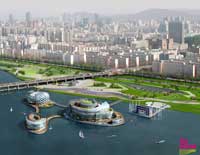 An impressive Korean floating island in Seoul Korea, by the Flossom Corporation, FloatingIsland.com.